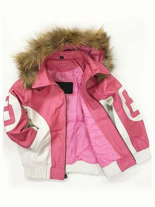 Look at! Offering you a Vegan -Fur-Lined 8 Ball Pink Hooded Jacket which is truly enticing and ideal winter wear. It has an outside layer produced through Vegan leather which will keep you warm and intact through all the cold and to further add up its comfort sensation. Furthermore, its internal layer is through an inner viscose lining.