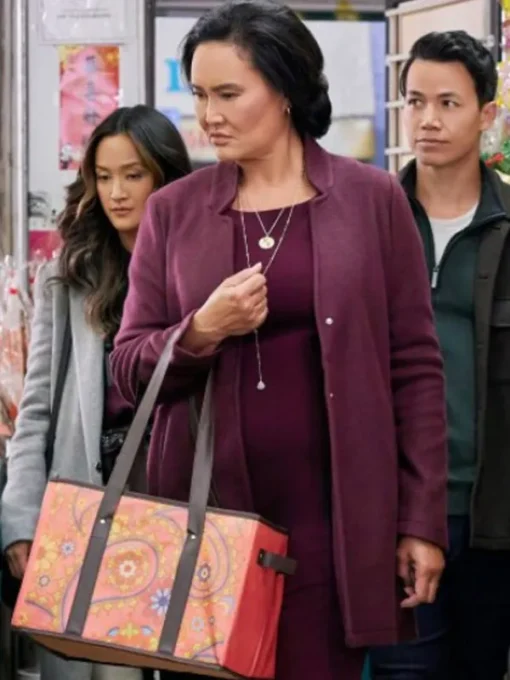 Tia Carrere A Big Fat Family Christmas 2022 Ivy Maroon Coat