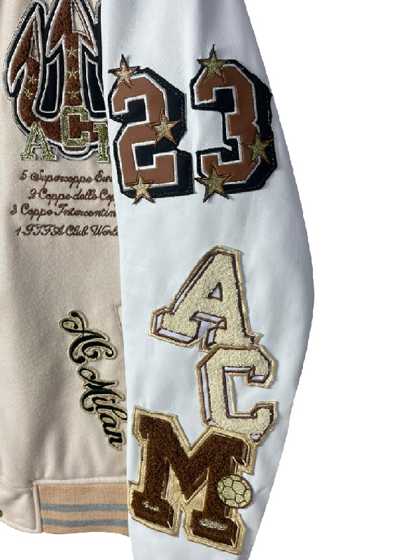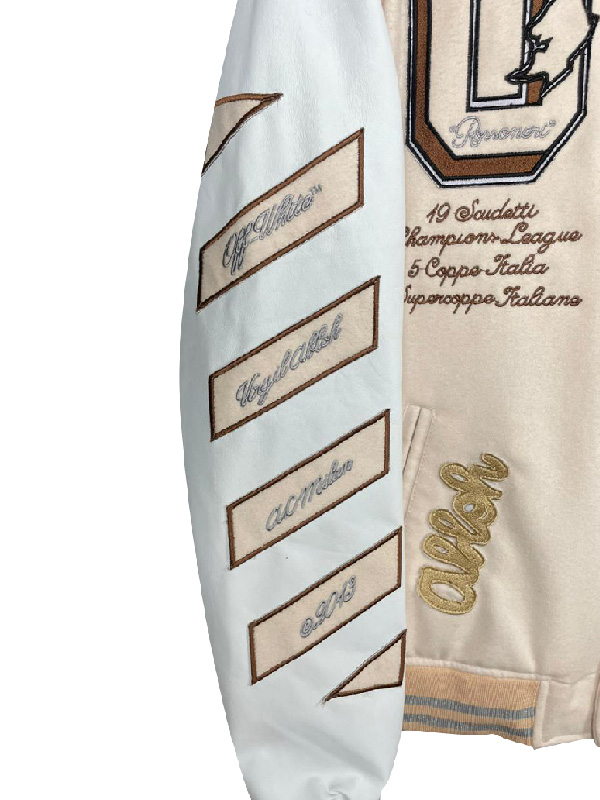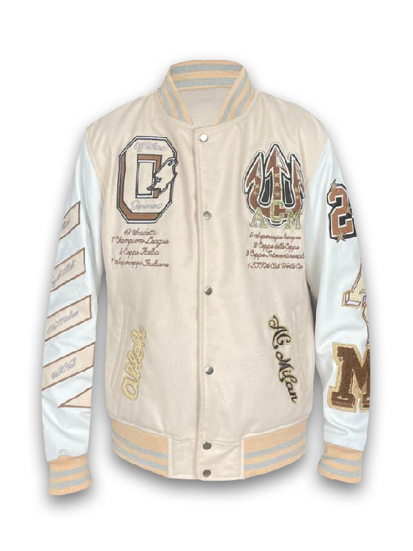 Letterman Football Club AC Milan Off White Varsity Jacket