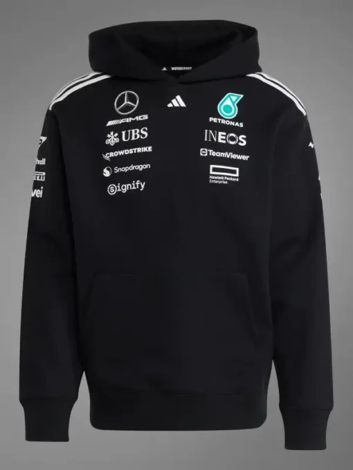 Kangaroo pockets give you space to warm your hands or stash essentials, while the smooth interior makes this Mercedes F1 sweatshirt comfortable over a tee, thermal, or race-day jersey. This isn’t just fan merch it’s a hoodie built to be worn hard, washed often, and still look sharp.