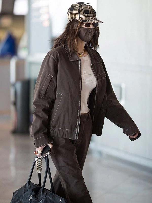 The Airport Look Bella Hadid Brown Cotton Jacket captures the essence of casual sophistication and effortless style. Inspired by the fashion-forward choices of model Bella Hadid, this jacket is a versatile and trendy addition to any wardrobe.