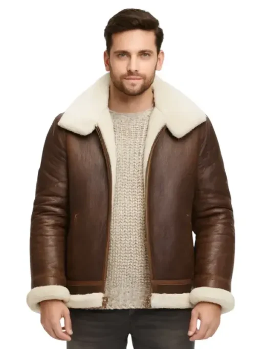 Introducing the Alex Brown Sheepskin Shearling Aviator Leather Jacket! Men’s Brown Shearling Real Leather Jacket is the most demanding in the winter season. Most people admire the sheepskin leather jacket because its quality gives you a lasting smooth and calm feel.