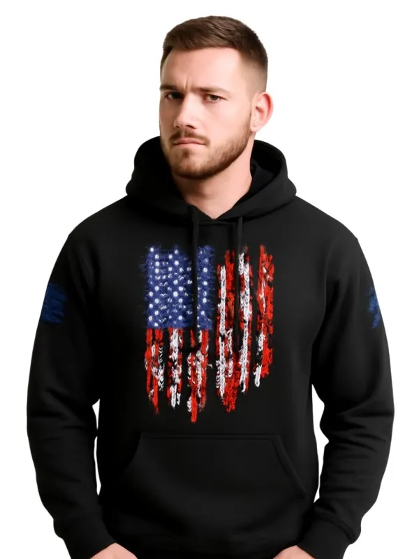 Men’s Pullover American Flag Guns 2.0 Black Hoodie