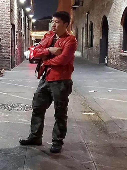 Amityville Apt 2023 Leonard Zhang Red Biker Leather Jacket