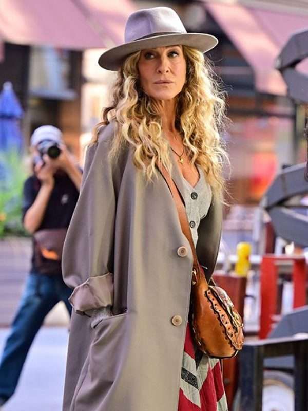 And Just Like That is the perfect new addition to the modern soap genre that initially stresses the thriving yet reality-infused lives of three best friends who deal with further reality-hit cliffhangers in their 30s and 50s. Now, the series is doing well on the calendar, especially with the legendary Sarah Jessica Parker as one of the main figures. With that said, have a glance at the actress-inspired stylish And Just Like That Carrie Bradshaw Grey Coat, merely this season’s wardrobe essential that you wouldn’t like to miss out on.