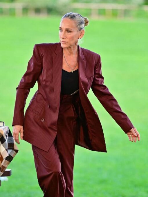 Sarah Jessica Parker And Just Like That Carrie Bradshaw Burgundy Oversized Suit