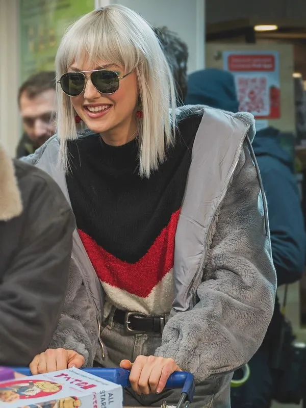April X Lilly Krug Gray Sherpa Jacket