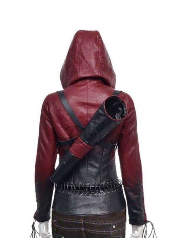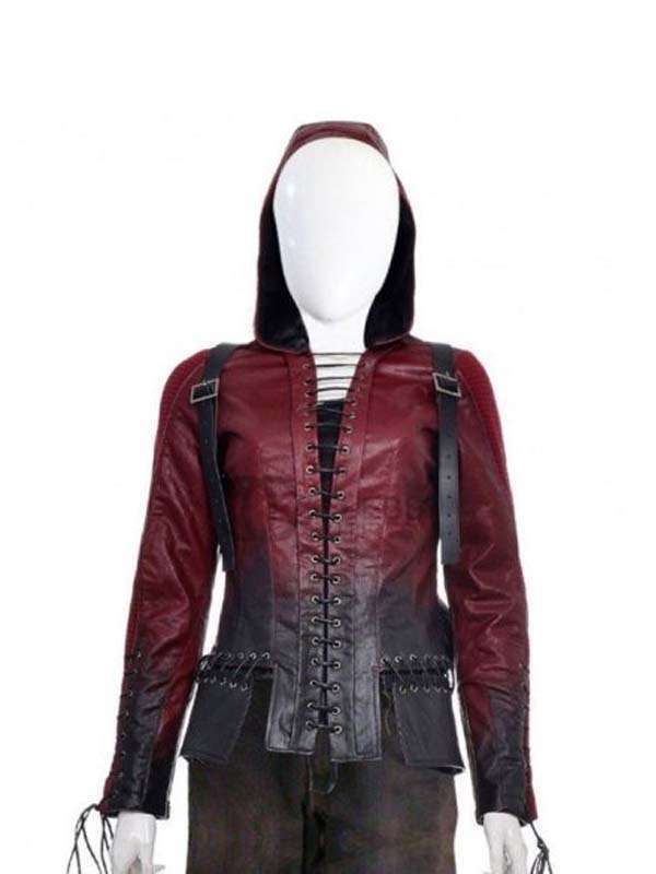 The Willa Holland Arrow Season 4 Thea Queen Leather Jacket has durable and fine stitching, with the belts on the shoulder and cowboy look this outerwear is perfect party wear. It has long sleeves along with a fitted style with a lace-up style on the cuffs. On the front it is given a full lace-up conclusion that is two-toned, it also has a hood attached at the back.