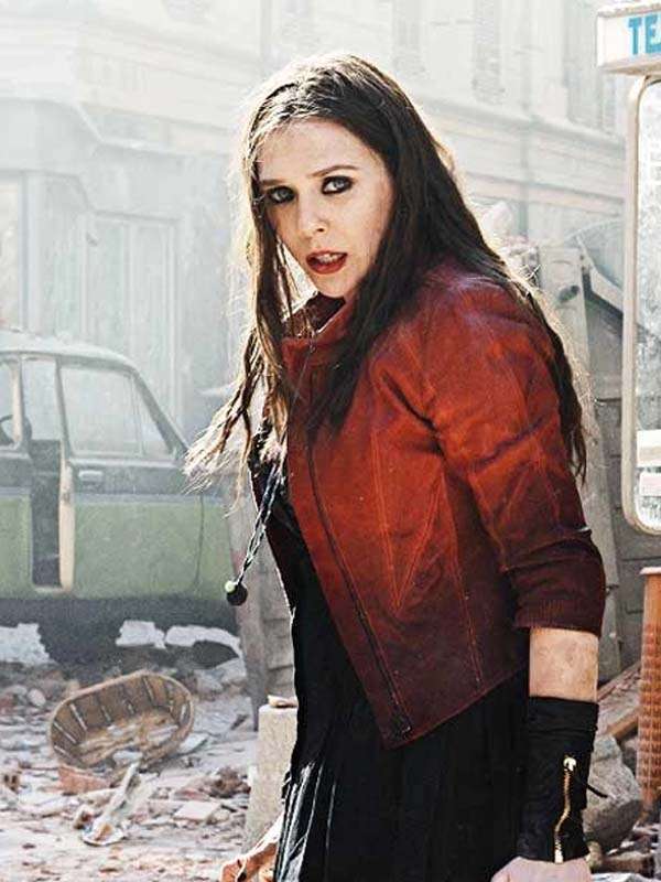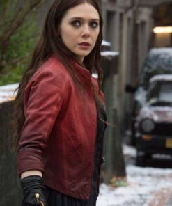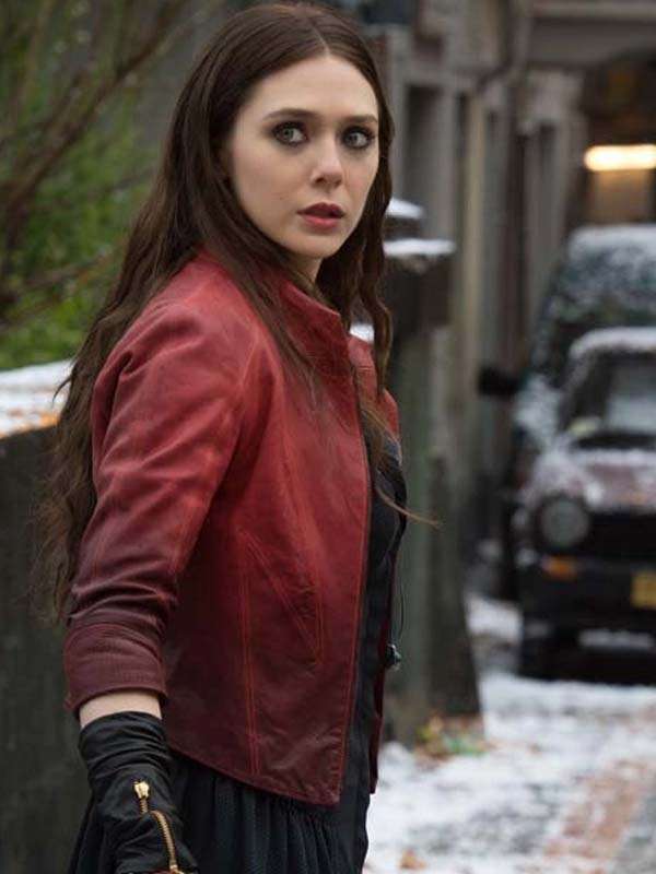 Scarlet Witch Avengers Age of Ultron Elizabeth Olsen Red Leather Jacket