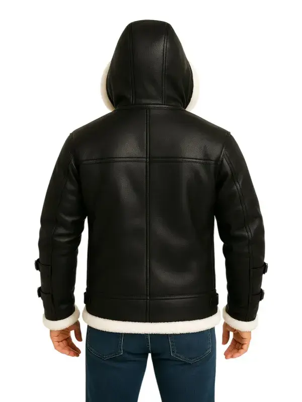 Handsome men always try something that add more charm and charisma in their personality, for them nothing is more important than an appealing and charming look. When the winter is there with style and fashion cozy and warm costume is also very important. But don’t worry our black white shearling leather jacket is a classy outfit that helps to beat the cold harsh weather but don’t let you lose your stylish and charismatic gaze. When you make the white shearling leather jacket you will be most handsome person in the party as all the features are very unique, classy and eye catching. The most tempting part of the jacket is the white shearling black leather detachable hood, along with white fur on sleeves cuffs and hemline with 3 leather strips on each sleeves.