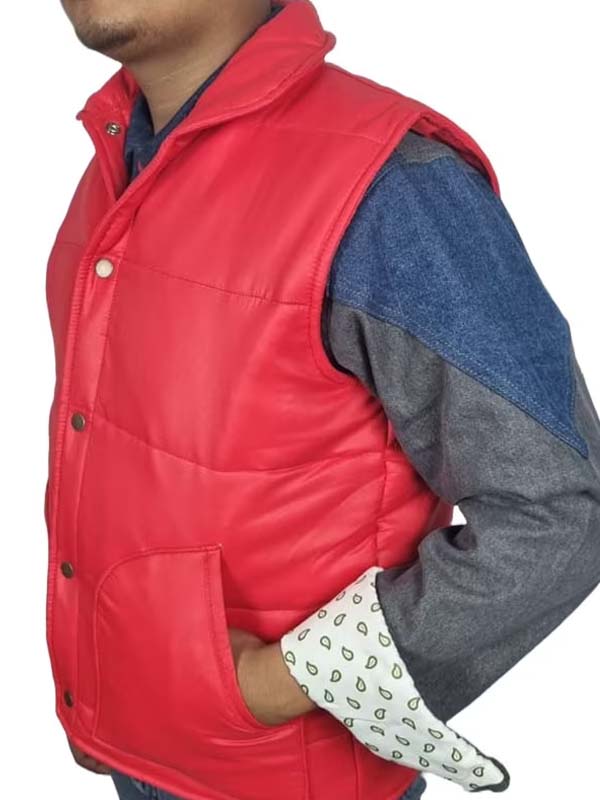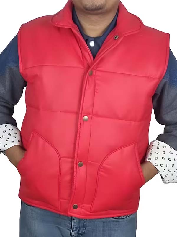 Crafted with a choice of plush down or synthetic fill, this Marty McFly puffer vest or Back To The Future Michael J Fox Puffer Vest offers the puffy look that made it a film legend. Covered with a slick nylon or polyester shell, it’s both comfy and cool—perfect for hitting the town or just chilling with friends. The radiant colors of this Marty McFly red vest or orange vest are sure to make heads turn, just like they did on the big screen!