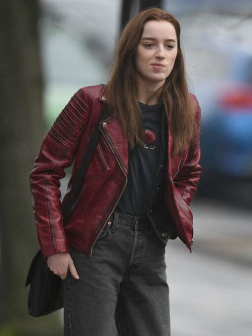 Alexandra Film Bank Of Dave 2023 Phoebe Dynevor Leather Jacket