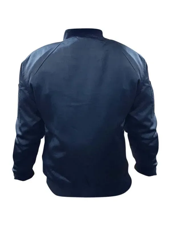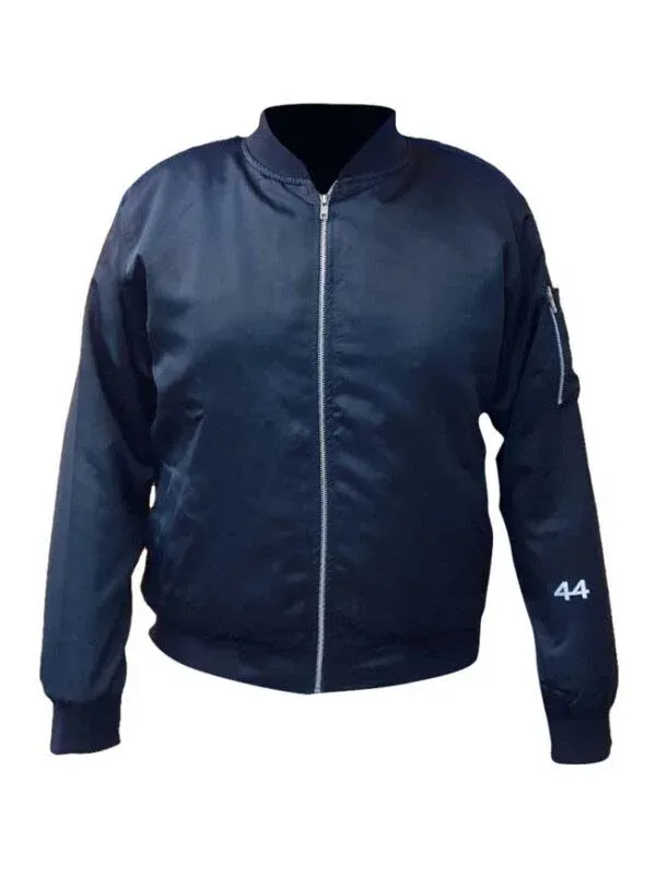 The Barack Obama black Bomber Jacket is crafted from satin fabric and features a comfortable viscous lining. It is equipped with a reliable YKK zipper for closure. The jacket’s collar, cuffs, and hemline are all elegantly rib-knit. Additionally, there are convenient zipper pockets on the left side of the attire. The number ’44’ is elegantly embroidered on the left sleeve of the jacket. The jacket comes in a striking pure black color.