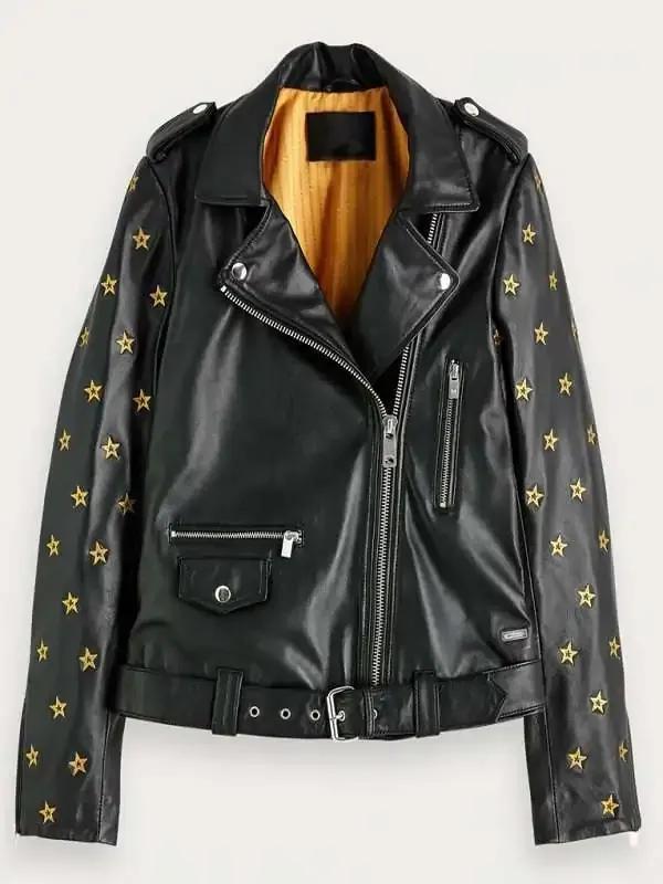 Gold Star Embroidery Batwoman Nicole Kang Black Biker Leather Jacket