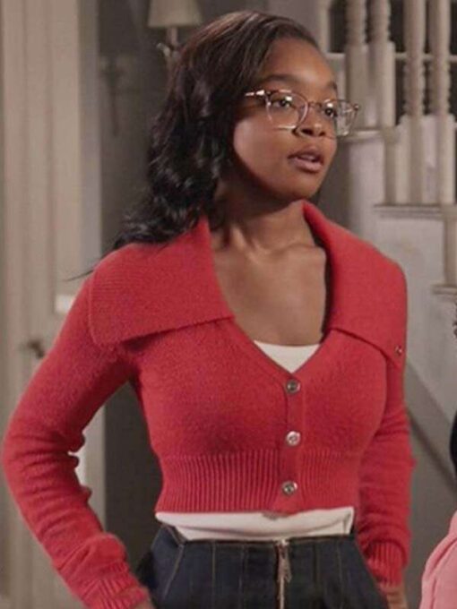 Flaunting the vintage fashion vibe in the modern-day world, the actress Marsai Martin has been spotted portraying Diane Johnson quickly turned heads with her perfect fashion moment in this woolen Marsai Martin Black-ish S08 Diane Johnson Cropped Cardigan containing classic details and un-fading charm ready to be styled variously! Add into the cart right now!