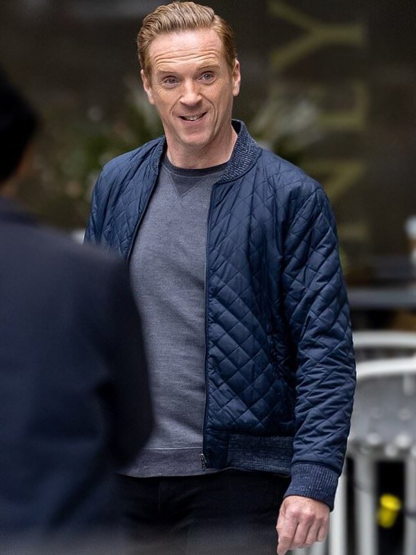 Damian Lewis Billions Quilted Blue Bomber Jacket