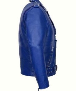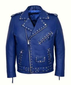 Wearing blacks and whites are traditional but you can add some iconic touchy colors to your wardrobe by holding this stylish Blue studded motorcycle leather jacket. This trendy super fine quality leather jacket has all that a bike rider wishes for.