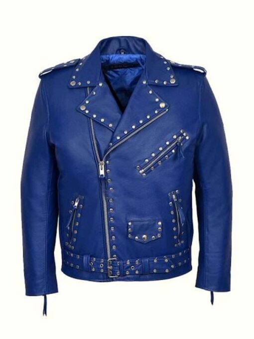 Blue Studded Motorcycle Jacket
