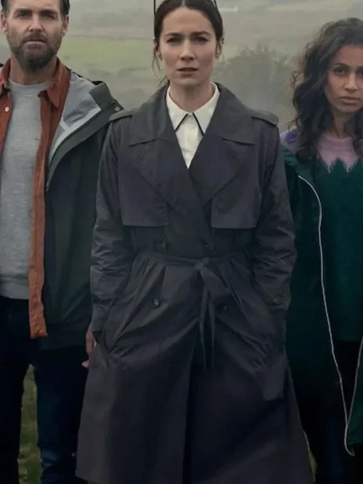 The Bodkin Dove Black Trench Coat is a striking piece of outerwear that effortlessly combines classic elegance with modern sophistication. Worn by Siobhán Cullen in the 2024 TV series Bodkin, this trench coat epitomizes timeless style and functional design.