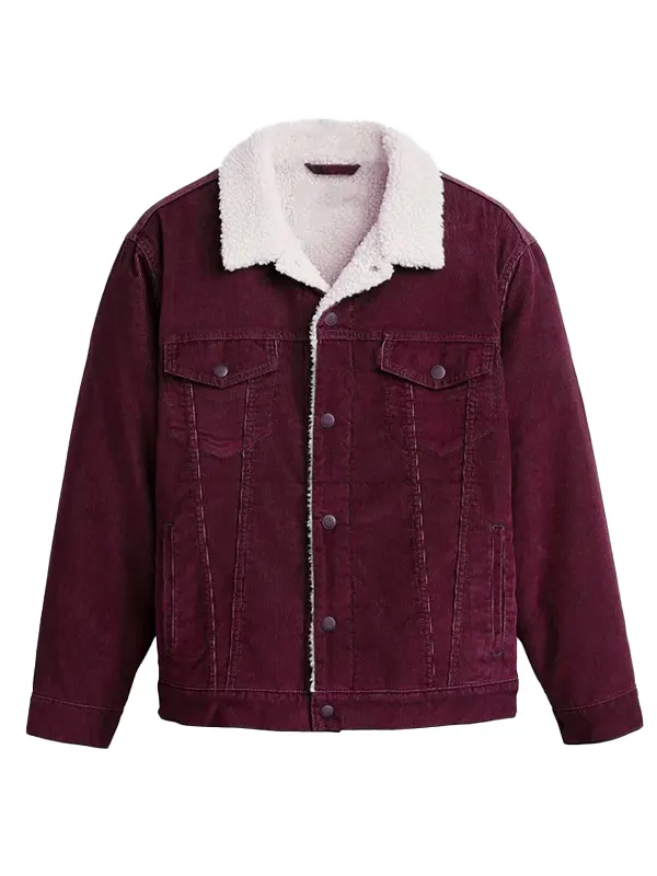Trucker Western Burgundy Shearling Corduroy Jacket