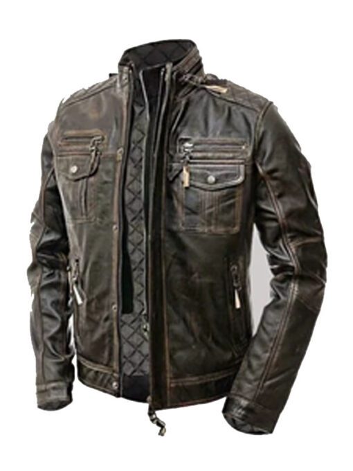 Mens Distressed Brown Leather Jacket