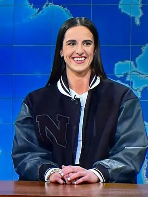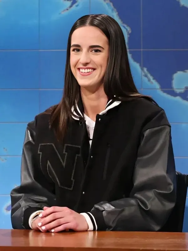 Ready to look like a real game-changer. Now you can with this varsity-inspired SNL Caitlin Clark Jacket. Designed in honor of Caitlin Clark’s style on her breakout TV appearance. With her fearless approach on the court and off-court cool.