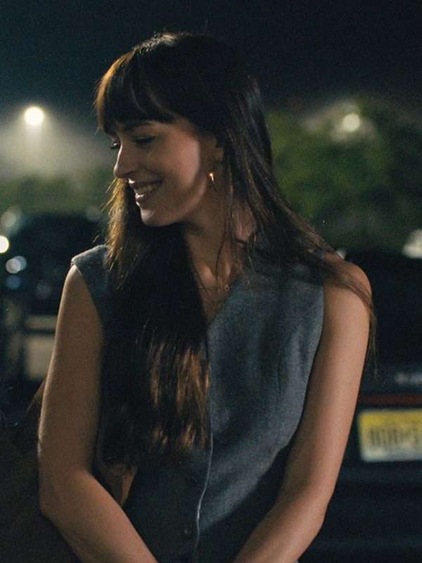 This outfit is carried by famous American actress Dakota Johnson as she plays the character of Domino, a single mother of an autistic daughter, in the famous coming-of-age comedy-drama movie.