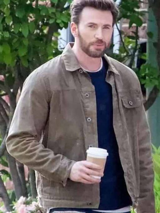 Furthermore, The front is fastened with a classic shirt-style collar and a front button closure for easy closure. Also, one chest and two waist pockets on the front to save your stuff. The fine fabrication of the Ghosted Chris Evans Jacket adds an elegant look. It comes in brown color to elevate your style perfectly.