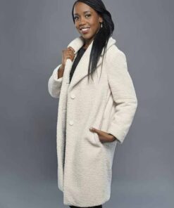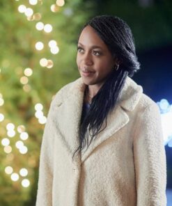 Rukiya Bernard performed the role of Hannah Turner in the movie Christmas is evergreen: bells are ringing. As the Christmas is there then the Hannah Turner Christmas evergreen coat is a perfect choice to make attire for this winter. The White Sherpa Christmas is evergreen coat is beautifully designed with fine quality Sherpa Fabric for the ladies who want to steal the beautiful moments in the cold December.