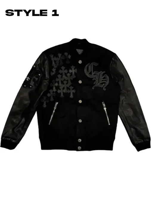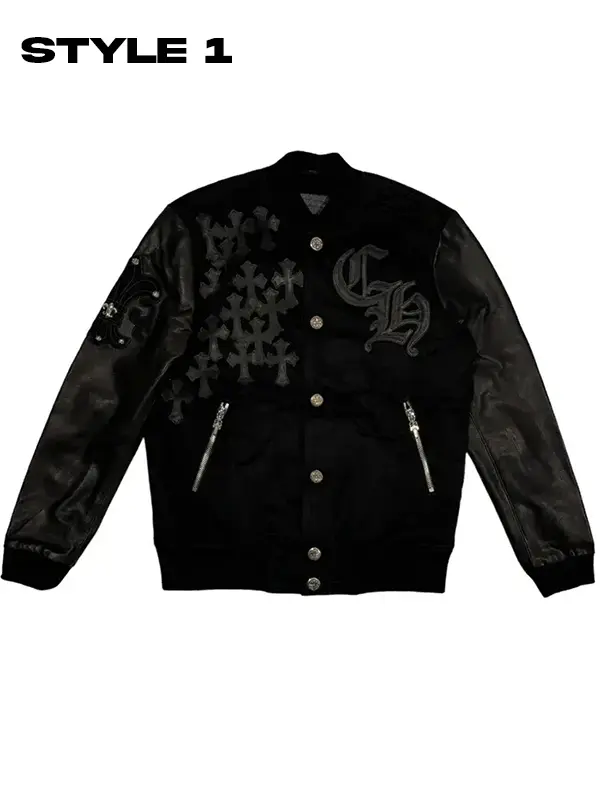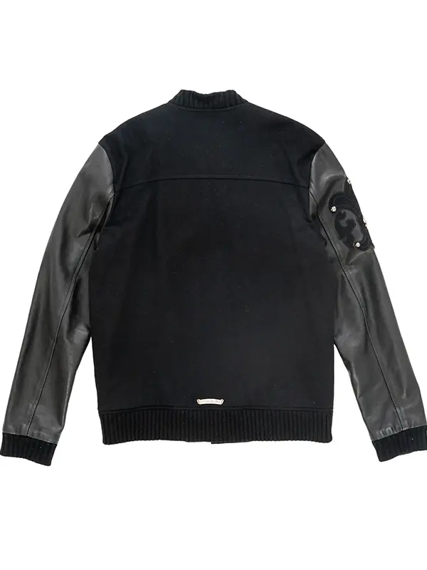 Elevate Your Streetwear with Chrome Hearts Black Letterman Varsity Jacket’s Signature Studded Leather Design