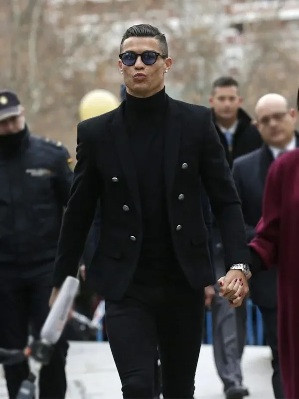 Ronaldo red carpet look is further enhanced as this blazer is made in black color. The stunning color brings a level of chic look to the suit and also makes it perfecto be worn with pother attires as well. Just like the Cristiano Ronaldo Cr7 Suede Jacket, this outfit is also a reflection of the broader Cristiano Ronaldo clothing line, showing the super star’s style, class and epitome of fashion.