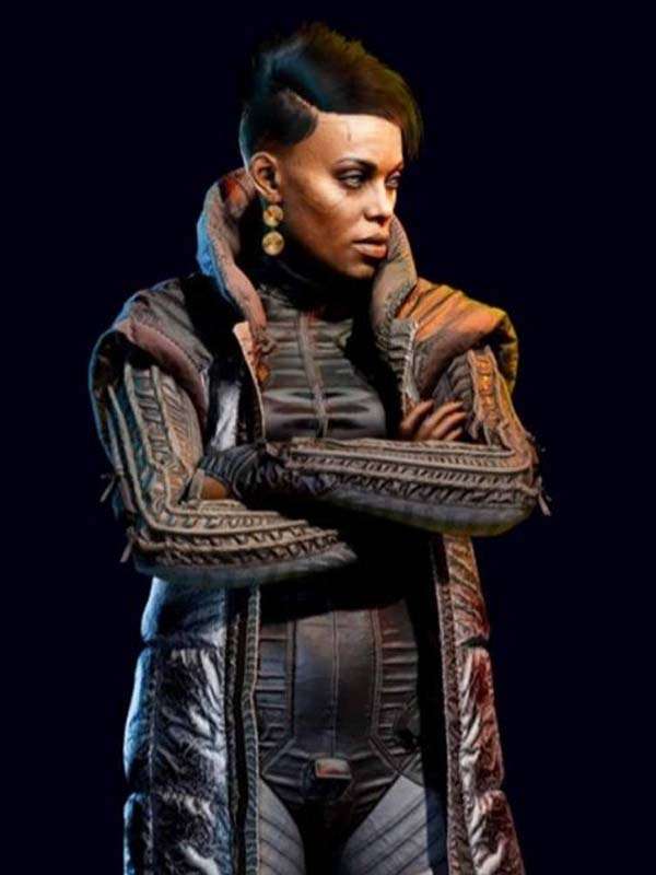 Fabricated with high skill and care out of genuine and premium quality parachute fabric, this long-length classy Cyberpunk 2077 Brigitte Coat is finished inside with a sleek viscose material that holds great ease and comfort for you all day long. It comes in Silver and black color, this finely shining apparel has erect stand-up style collars, sleeveless sleeves, and an open style front where all these features give it a unique stylish look.
