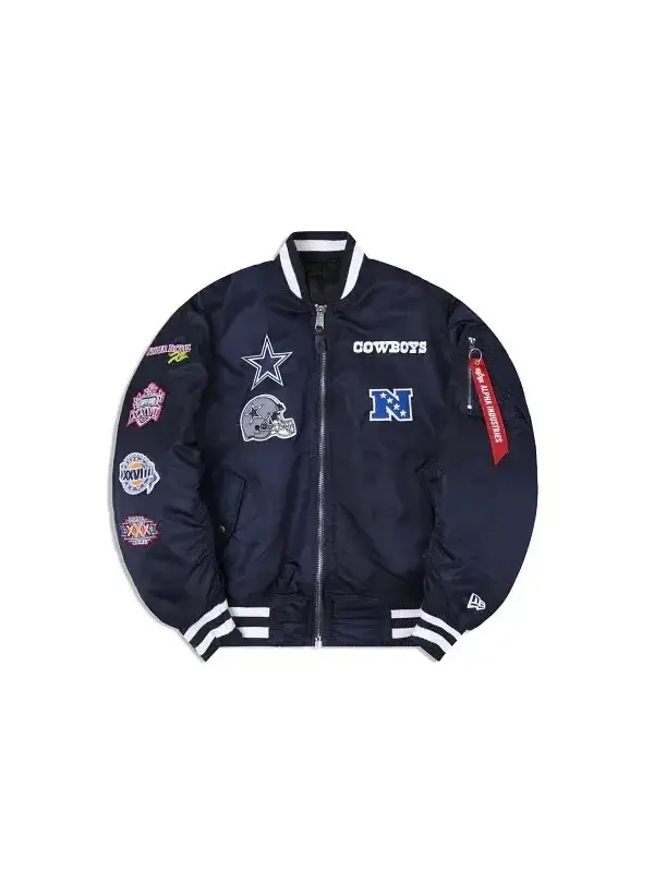 The choice of Dallas Cowboys MA-1 Bomber Jacket is great addition to your wardrobe. Get the combination of elegant look with functional features. Whether at the stadium or at nights on town. The Dallas Cowboys MA-1 Bomber Jacket ensures you display style with practical use.
