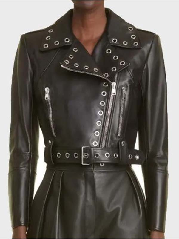 Good Morning America Dany Garcia Grommet Black Leather Jacket