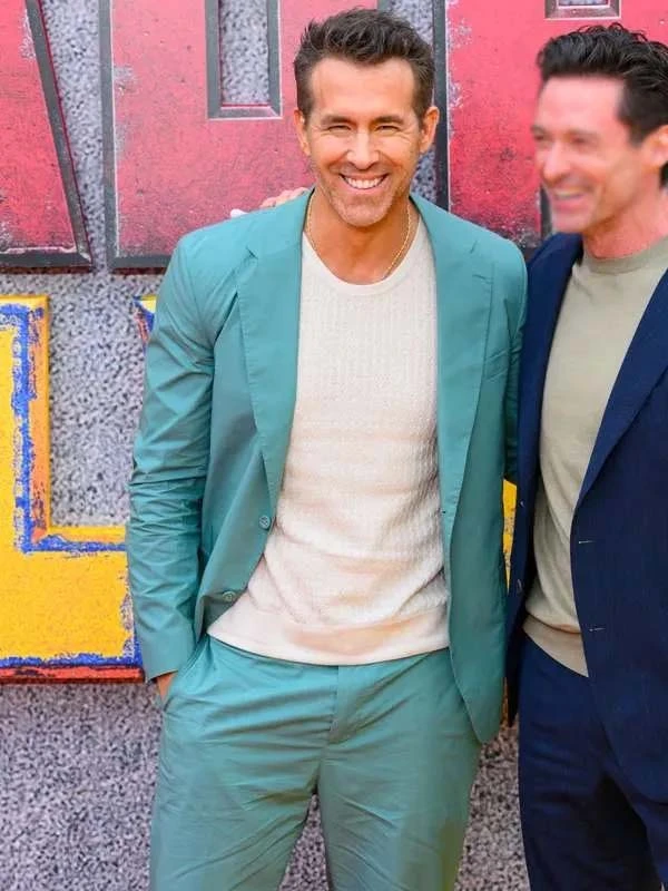 Deadpool & Wolverine 2024 Movie Premiere Ryan Reynolds Blue Suit
