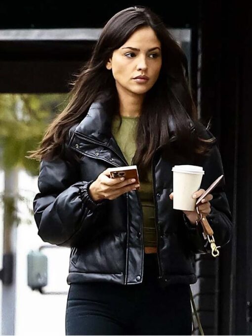 Eiza González Puffer Leather Jacket