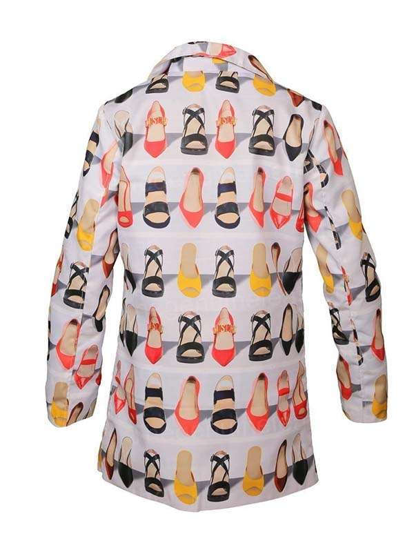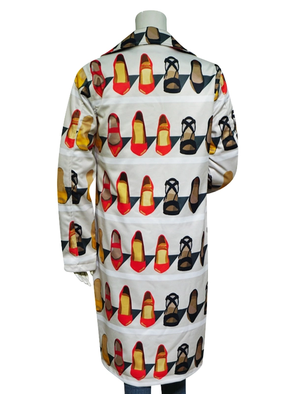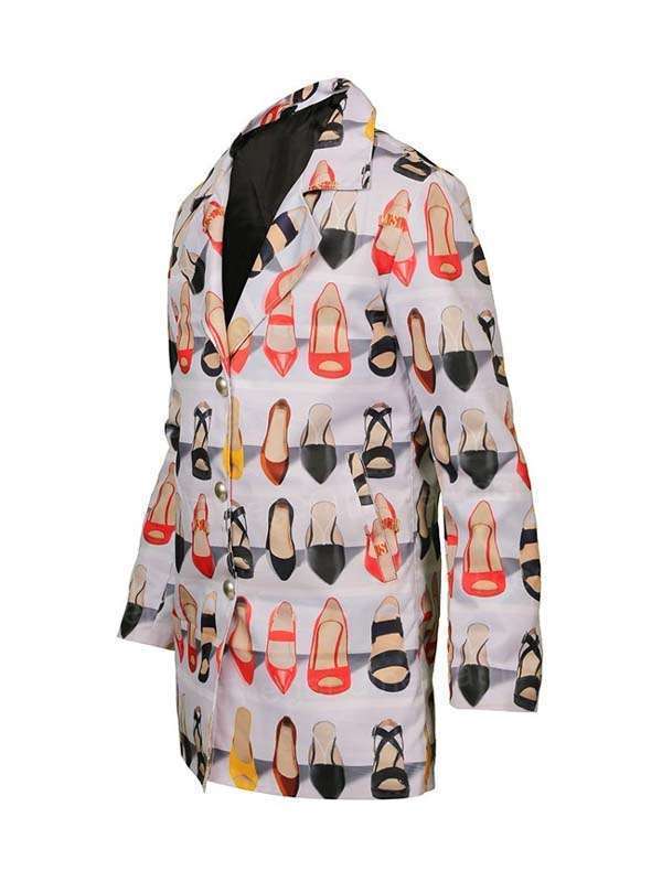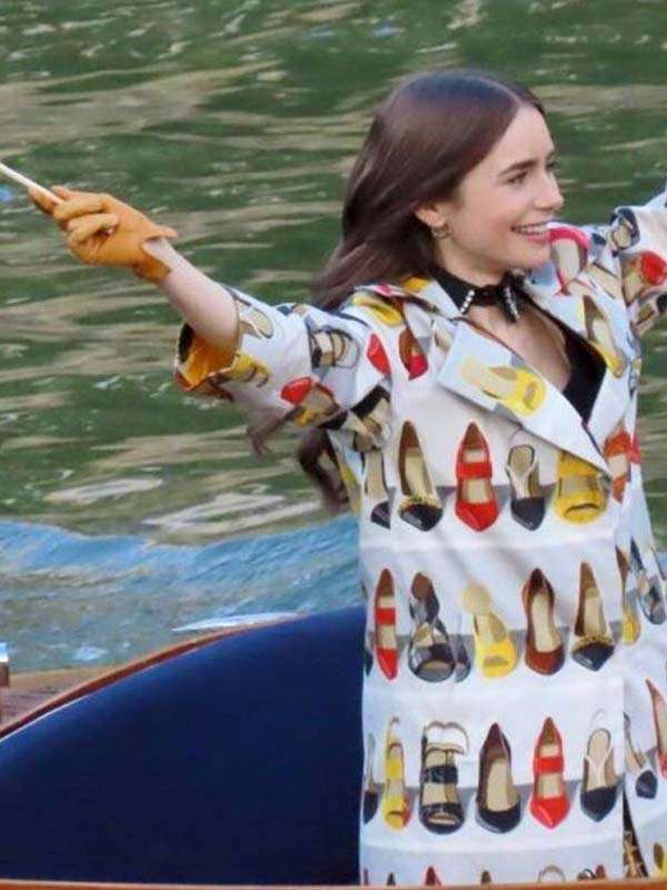 Thus, come out for the right reason for the popularity of this coat. Emily in Paris Lily Collins Trench Coat is fabricated incredibly with a pure cotton exterior and a soft viscose lining interior. Further, its features such as a front button closure, lapel style collar, and cute multi-colored shoes with white background print are enough to stun anyone in. order now.