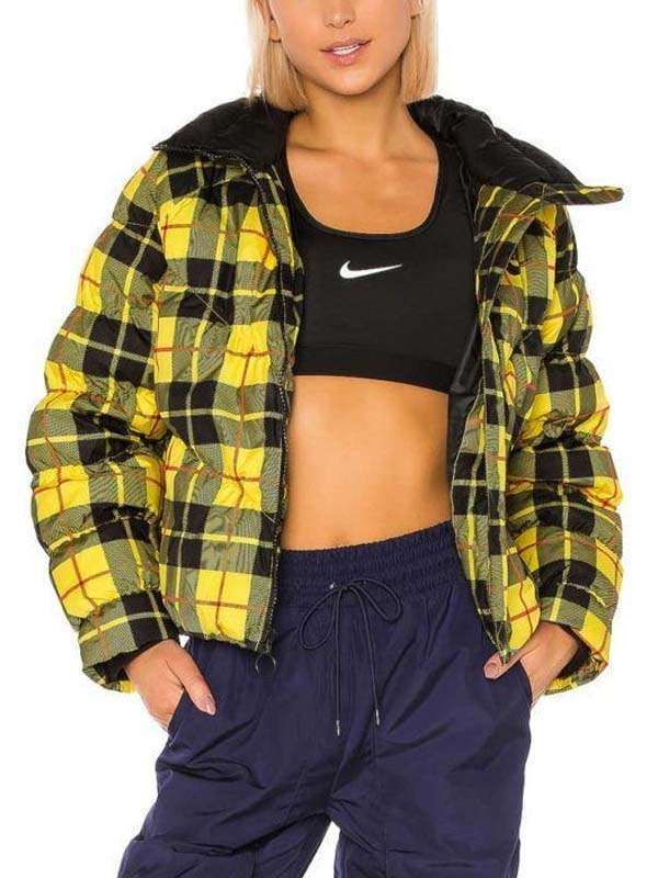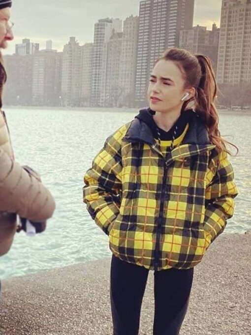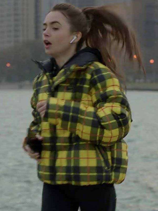 Lily Collins is also famous for her magnificent exhibition, as well as her surprising Lily Collins Plaid Jacket in the show. This is highly designed out of the polyester material checkered coat with a delicate inside thick covering with viscose lining. It has a stand-up collar and a front zipper fastening. It has long sleeves and cuffs that are open at the hem. The coat has two front pockets and two inside pockets to keep your stuff safe. It is available in a yellow and dark color scheme with a checkered pattern.