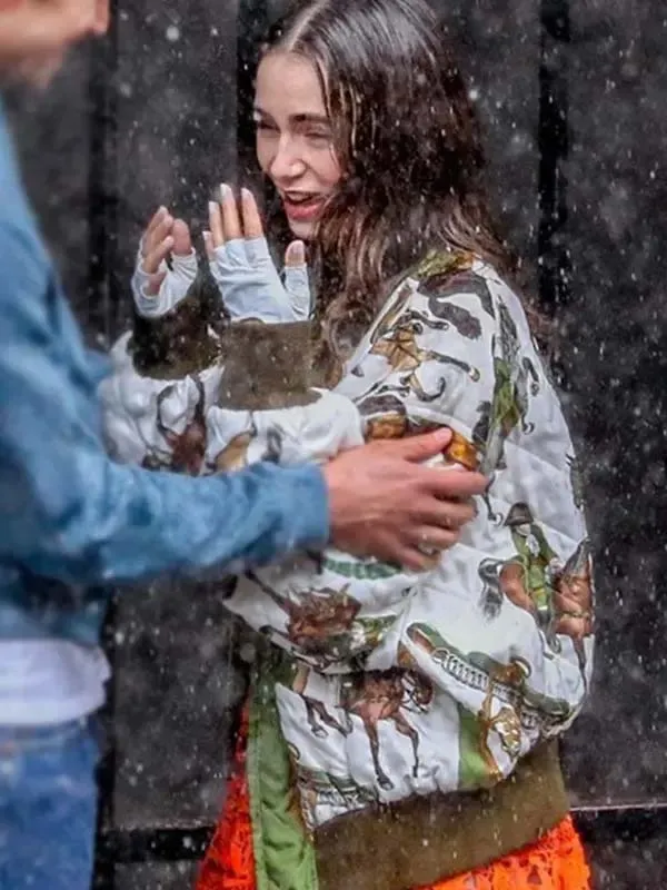 Wear this Emily in Paris season horse jacket with black jeans and a white tee for a clean city look. Or layer it over a dress to balance sweet and edgy. It also pairs well with boots, sneakers, and even heels, so you can shift from day plans to dinner without changing your vibe. For fans who love celebrity jackets, this is a wearable nod to screen style without feeling like a costume.