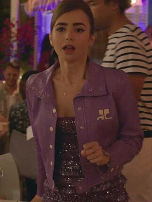 Lily Collins Emily in Paris S02 Emily Cooper Purple Leather Jacket
