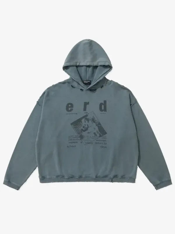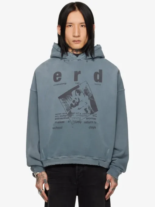 The slate blue hue serves as a high-contrast canvas for the signature ERD graphic—a mark of cultural elitism and avant-garde design. This hoodie serves as a powerful foundational layer under our Women’s Leather Jackets, bridging the gap between luxury outerwear and street-level utility. It is an undisputed authority piece for the 2026 wardrobe, prioritizing Fit Retention and authentic distressed aesthetics.