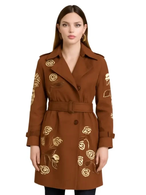 Shop the Ermanno Scervino Embroidered Brown Trench Coat & Get Yours Today
