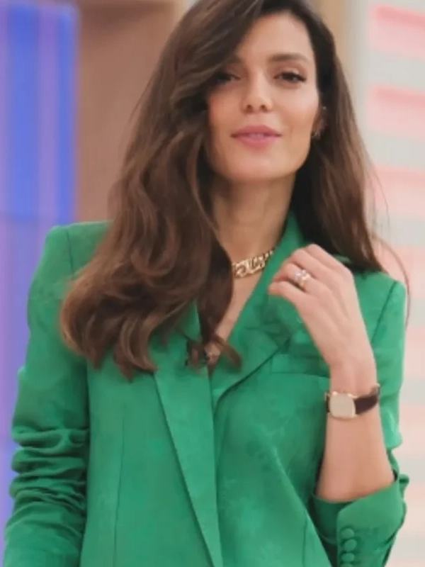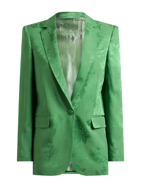 Estamos Em Casa 2026 Andreia Rodrigues Notched Lapels Green Tailored Fit Jacquard Floral Blazer