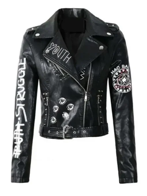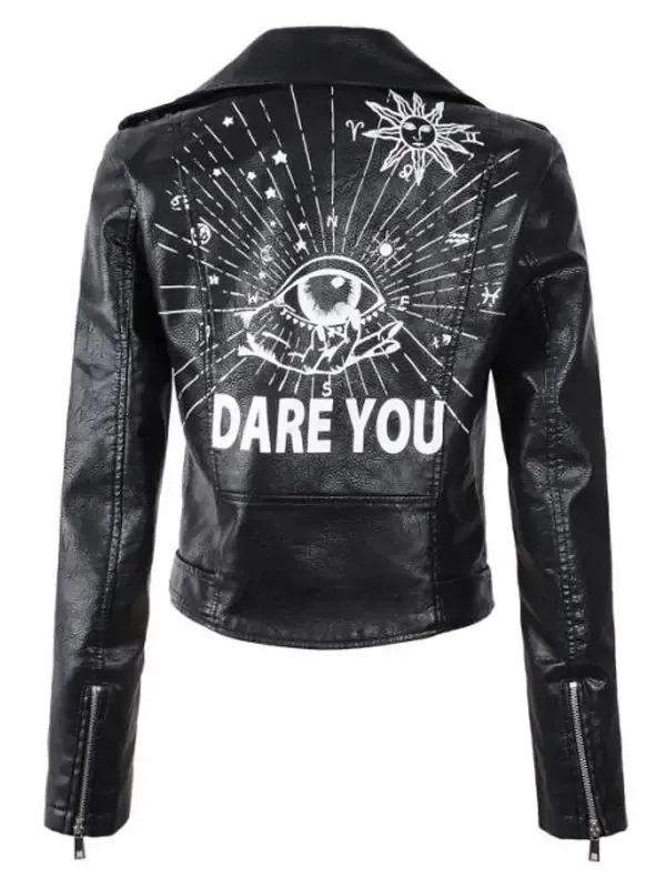 The most awaited and famous Eye Dare You Leather Jacket has landed on our page now to give you a trendy look and the addition of glamorous glam to your personality. The dazzling top layer is covered with outrageous patches all around to enrich its style for an iconic look. The outerwear fully complements your personality in a second and gives you an on-the-go style immediately.