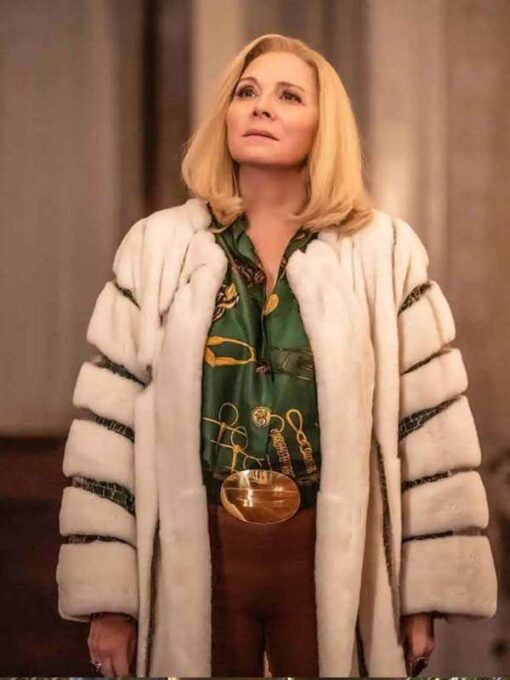 Margaret Monreaux Filthy Rich Kim Cattrall White Fur Trench Coat