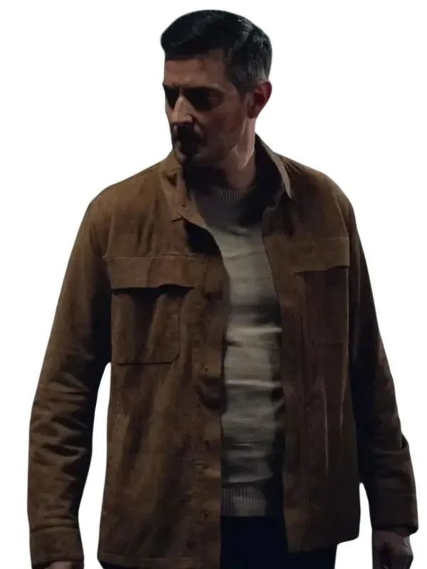 Richard Armitage Fool Me Once 2024 Joe Stern Brown Leather Jacket