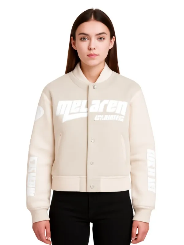 Whether you are a fan of racing or appreciate trendy jackets. This Fury McLaren F1 Bomber Jacket Off White is designed especially for you. It brings motorsport fashion directly to your wardrobe. This is an excellent means of expressing your passion for Formula 1 and the track spirit.