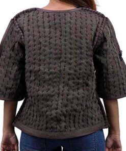 If you are looking for celebrity jackets then this must have to be hands-on as it can be worn as cosplay or costume for a Halloween party or you may just sweep it to your campus. Arya Stark jacket is constructed with cotton fabric for the outer layer as it has also to give lots of needlework and beautiful lace embellishments on the edges of this product. It has a little irregular open front with leather-tread fastening. Also having more rough touch with short sleeves as the sword girl finds no difficulty in steering the sword.