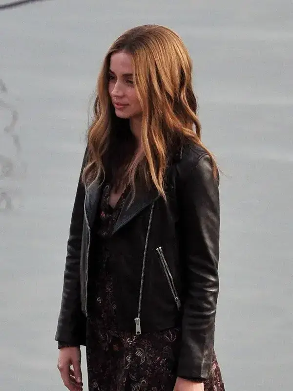 Give the right kick to fashion style! You have in your hands The Ghosted 2023 Ana De Armas Leather Jacket. The right way to node your head or to upgrade your personality while touching you a classy semblance. This striking voguish piece is a fine blend of charm and modern finish a fin blend that is highly inspired by the action romance series Ghosted. The gorgeous appearance character Ana De Armas has starred possessing this masterpiece when he plays the character of Sadie. The fine class of traditional finish comes in black color and you will surely like to grab this classic masterpiece to get the stylish epitome of the main character.