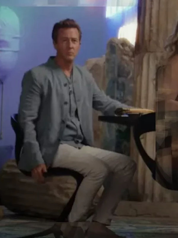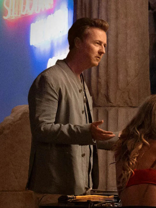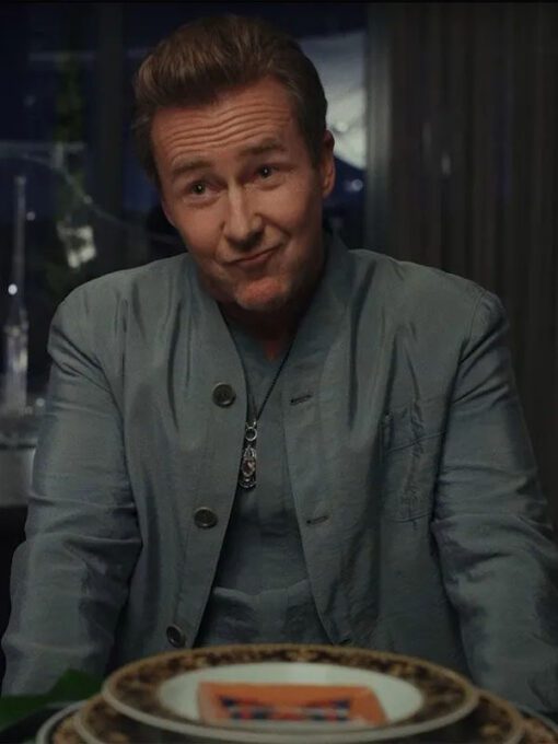 Edward Norton Glass Onion: A Knives Out Mystery Miles Bron Grey Jacket